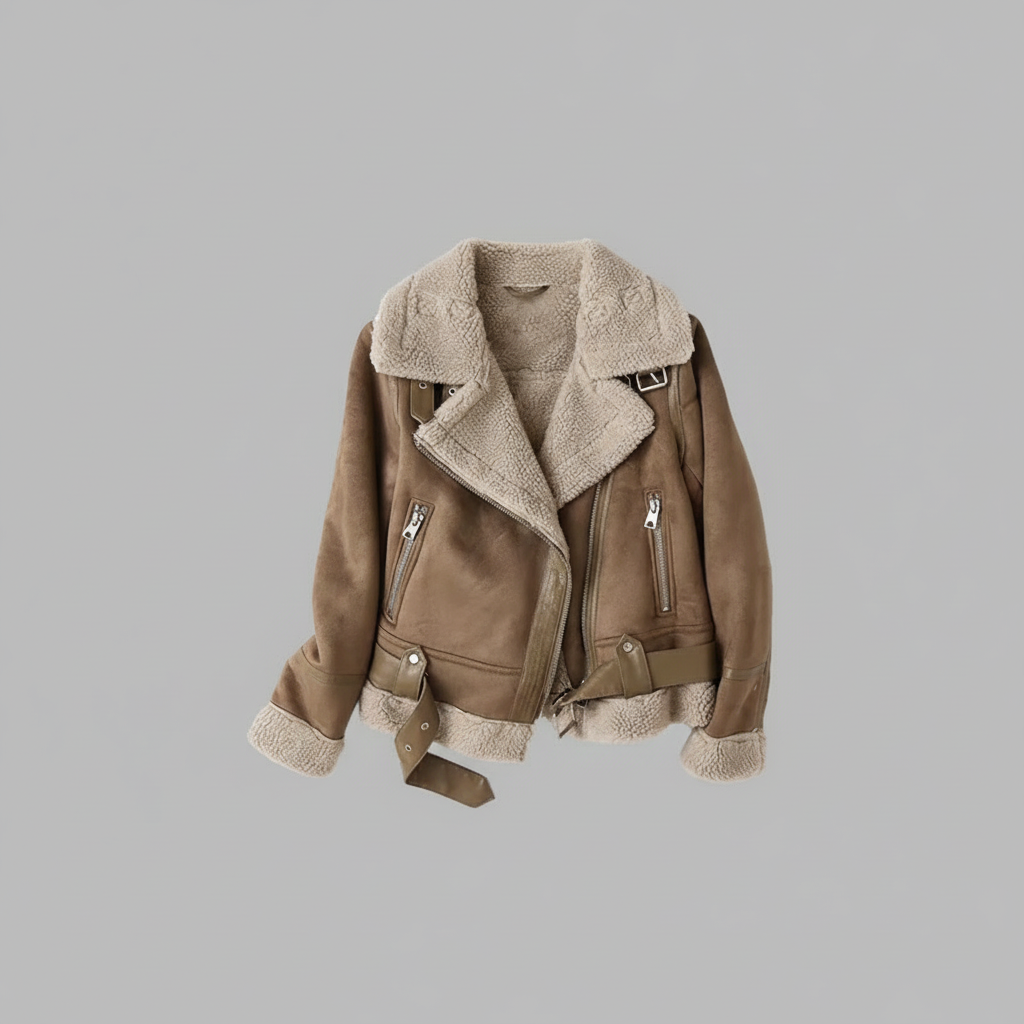 • Shearling Trim: Enhances warmth and style with a visible shearling finish on the collar, inner lining, and cuffs.