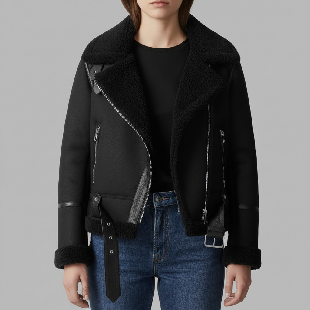 Shearling Trim Leather Jacket Women | Stylish Women&